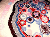 Esta manta foi feita com blocos redondos irregulares, emendados lembrando um patchwork